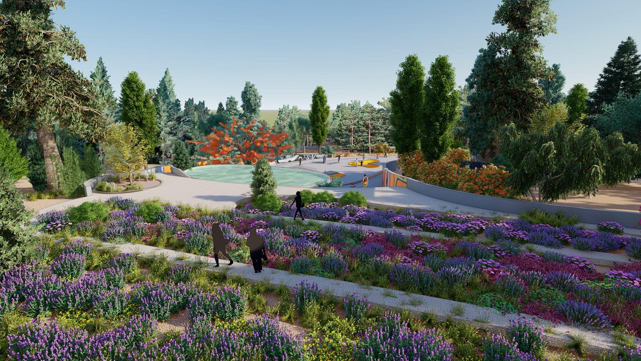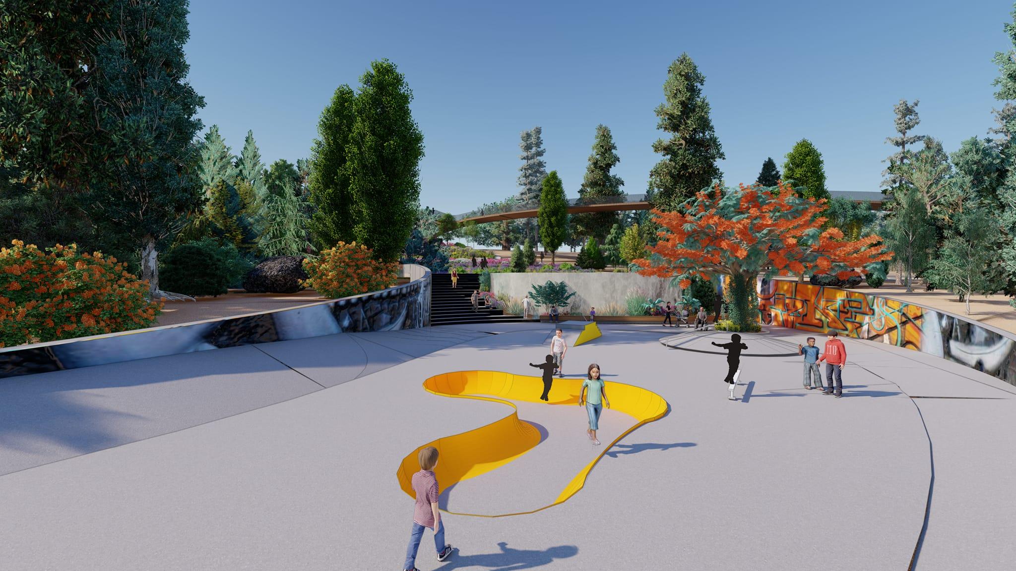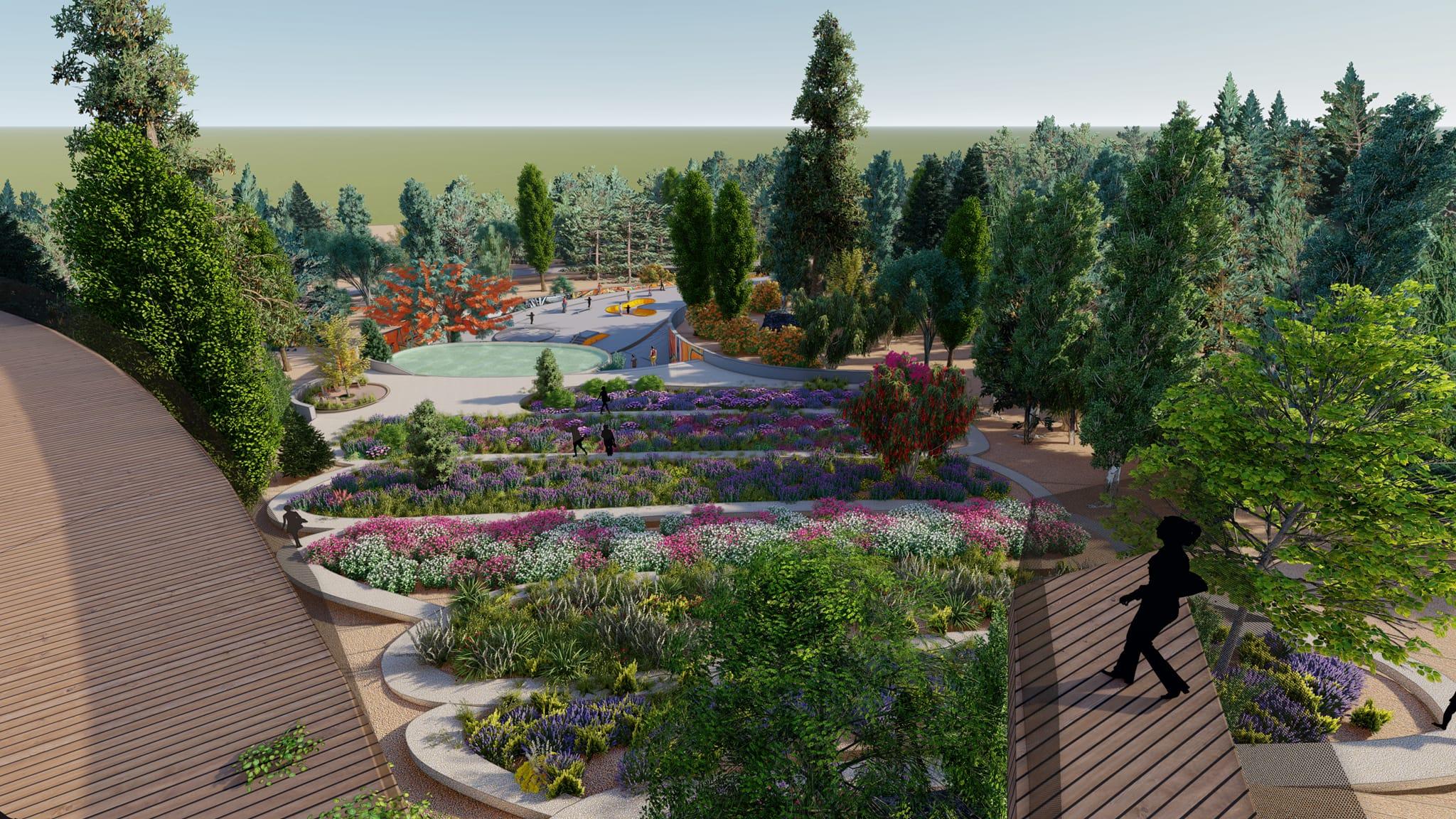 Проект включает в себя создание современной парковой инфраструктуры: дорожек и маршрутов, детских площадок, полей для занятий спортом, тренажеров под открытым небом, скейтпарка, мест для досуга, ботанического сада, парка для собак, амфитеатра.