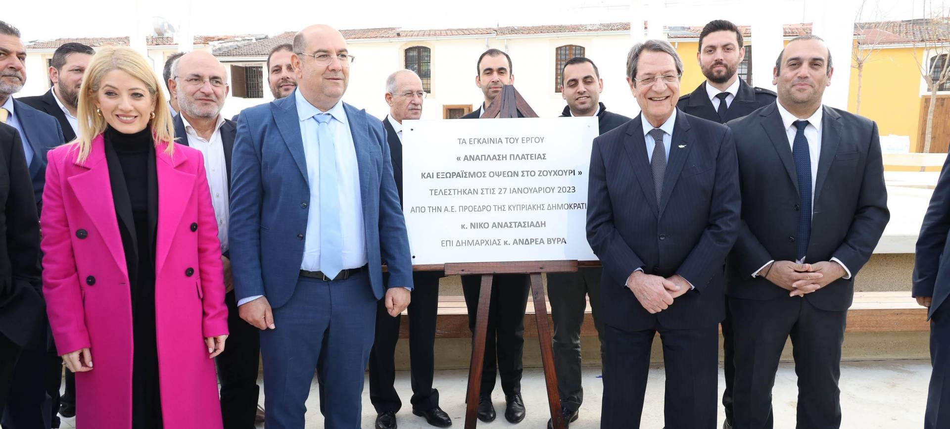 Первой локацией, куда наведался Анастасиадис, стала площадь Зухури. В присутствии мэра города и муниципального совета, а также других высокопоставленных чиновников, президент Кипра торжественно открыл новое общественное место для отдыха в городе.