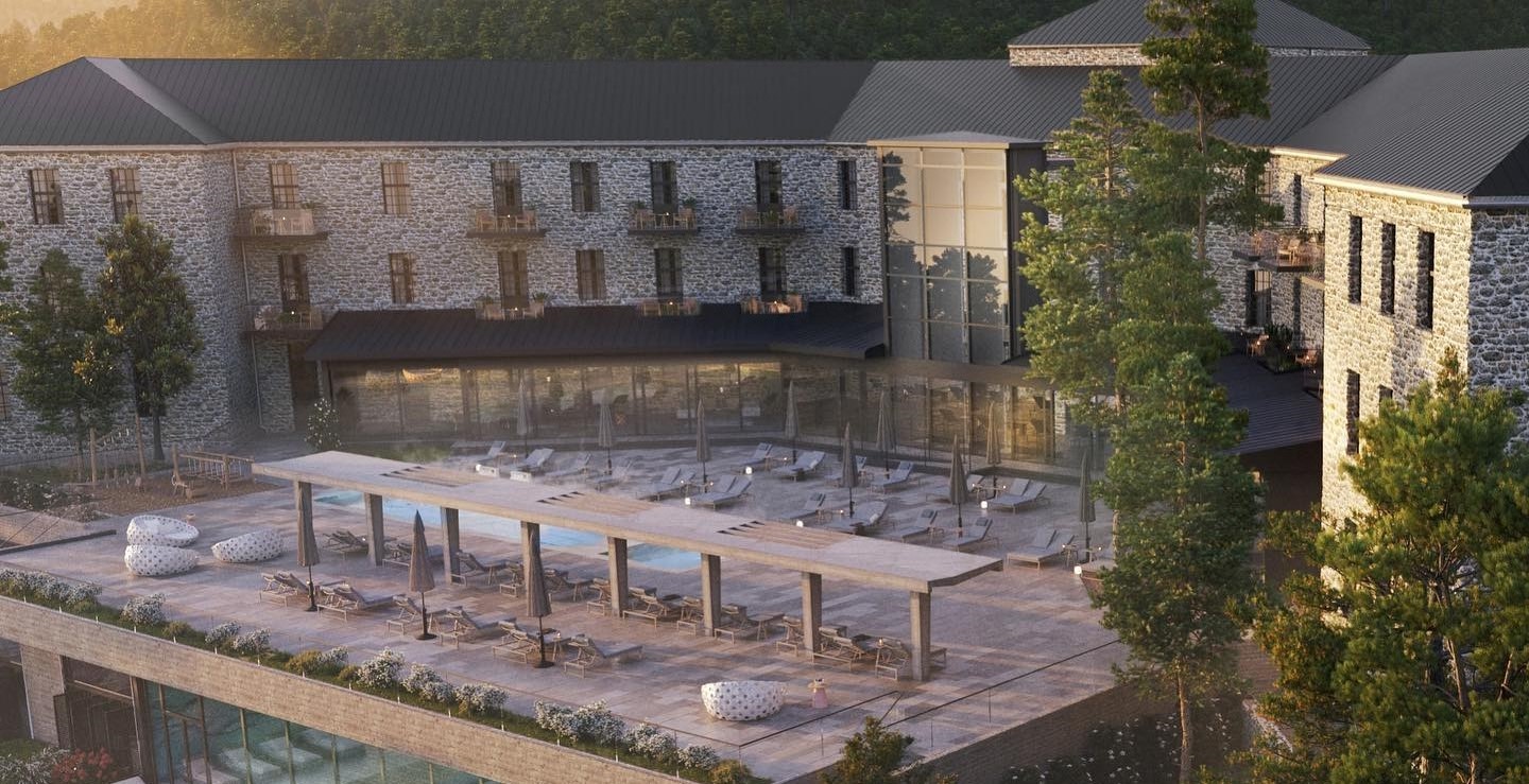 Из шикарной входной зоны гости отеля смогут попасть в ресторан, столовую, бильярдную и гостиную с камином и читальным залом. На месте старого бассейна появится большая лаунж зона с видом на лес.